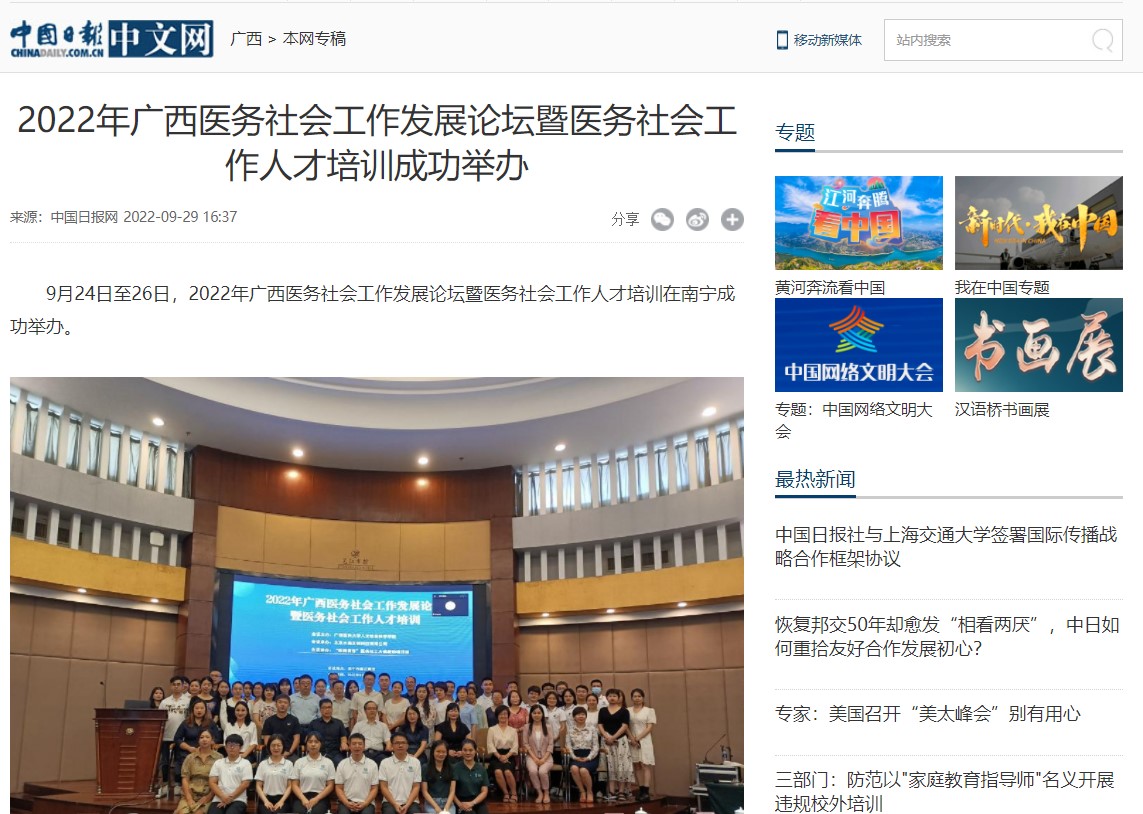 人民网、中国日报网、中国网等媒体报道拷贝漫画 拷贝漫画 主办2022年广西医务社会工作发展论坛暨医务社会工作人才培训