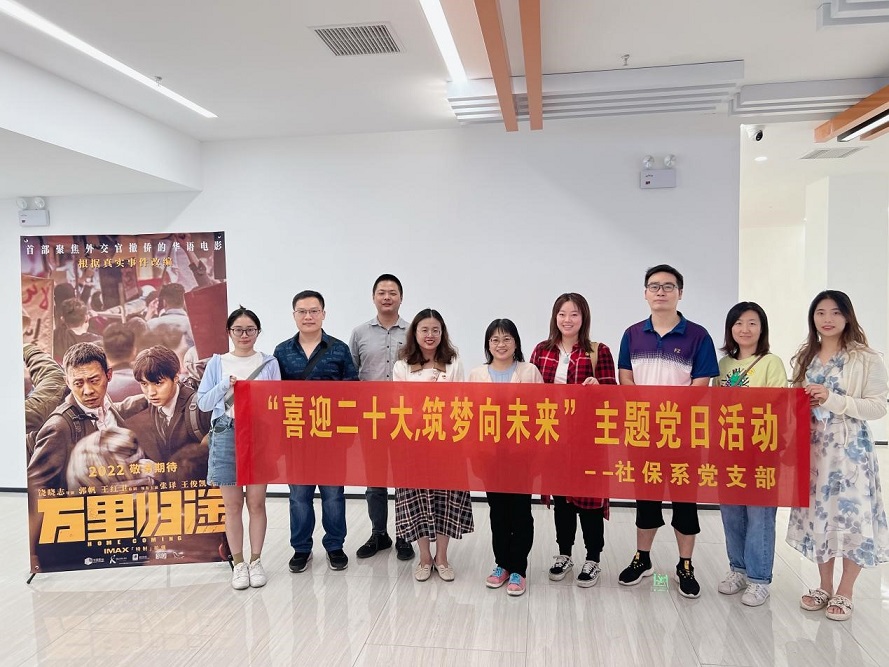 10月15日下午,社保党支部党员教师和学生代表一行9人,到星湖影城开展“喜迎二十大,筑梦向未来”主题党日活动,集体观看电影《万里归途》。该电影改编自真实事件,首次揭秘中国外交官撤侨的幕后故事。影片中的中国外交官在极其艰难和危险的情形下,始终不放弃每一位同胞,坚持不懈,把所有在异国之乡的中国人带回家。“归途”漫漫又荆棘遍布,但只要有勇气、有信念,血肉之躯亦能铺就,而这份“奇迹”的源头便是强大的祖国。