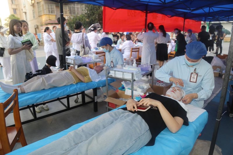 本次活动主题是“5.25护肤日”及“5. 28全国爱发日”义诊及体验治疗。在义诊中,医护人员认真聆听来求美及护发者的诉求,详细介绍最新护肤护发知识,根据每个人的情况制定了个体化的治疗方案,现场还发放了护肤护发宣传手册及治疗药品。同时免费为十几位痤疮患者提供果酸及水杨酸治疗,耐心细致的服务和鼓励的话语温暖心灵,引导大家树立科学健康的理念,得到了广大师生的欢迎,据统计,本次义诊150余人次,发放宣传资料120份。本次活动,加强大家对科学护肤护发的观念,赢得学校师生的广大好评。