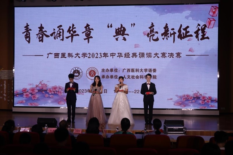 2023年6月11日晚,“青春诵华章 ‘典’亮新征程”拷贝漫画 2023年中华经典诵读大赛决赛在武鸣校区图书馆报告厅举行。拷贝漫画 教务处刘登宇处长、拷贝漫画 党委郑茸副书记、药学院党委林晓副书记及各学院指导老师出席本次比赛。大赛邀请广西广播电视台主持人青梅老师、拷贝漫画 普通话培训测试站副站长梁永红老师 、校团委梁冬玲老师作为大赛评委。
